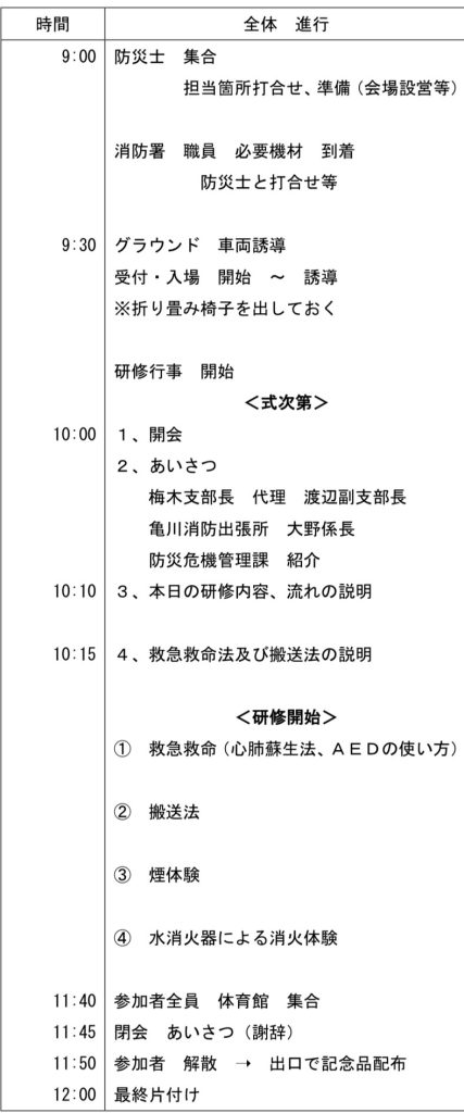 亀川消防所の全面協力て、亀川防災士会と行いました。